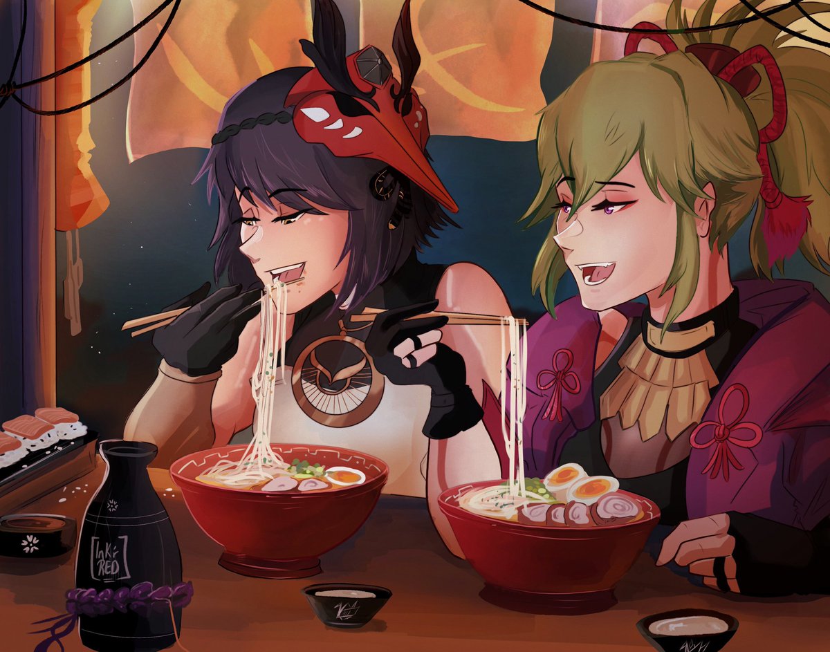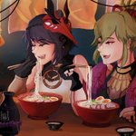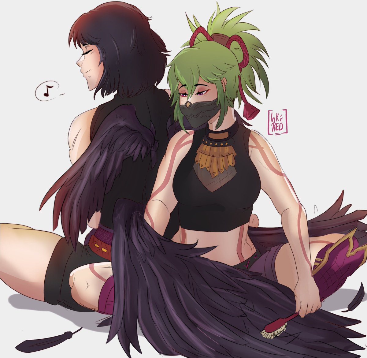 Havent finished her bday art yet ,but have some "sara being taken care of like she deserves "art #kujousara #shinosara #原神