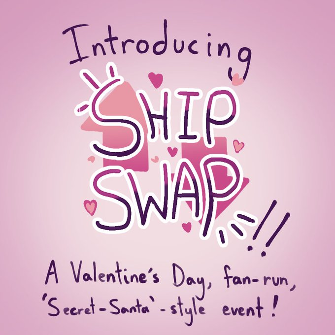 Introducing #ShipSwap2023 ! An event taking place on Valentine's Day with the aim of sharing love for your favourite fictional pairings through art and fan fiction! Find out more in the thread below! #ArtistOnTwitter #fanart #fanfiction #arttrade #ValentinesDay #ships #shipping