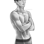 Practicing body anatomy, not bad I think. #digitalart #red #OC #MediBang #shirtless #sketch #simple #ibisPaintX #buff #longhair #Anatomy