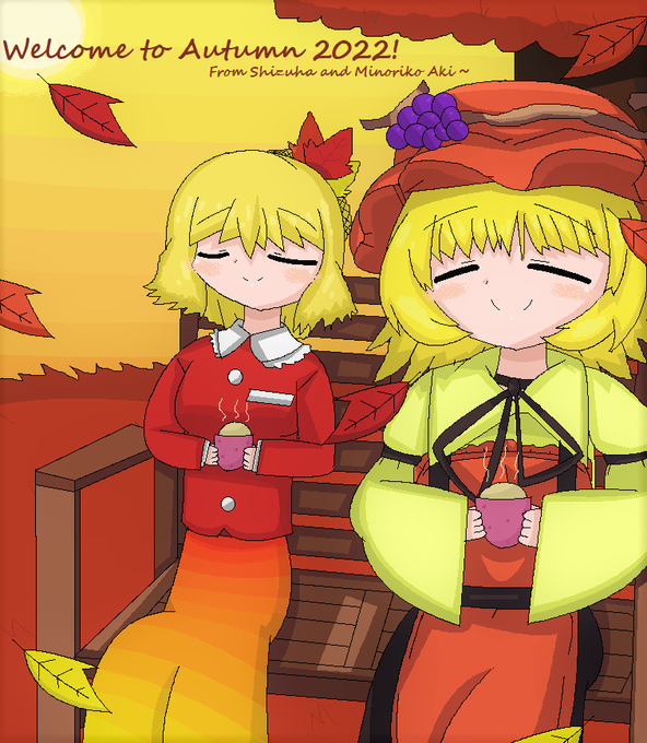 welcome to the season where leaves fall, and the potatoes are sweet~ 🍠🍂 #東方Project #touhouproject #秋穣子 #秋静葉 #minorikoaki #shizuhaaki #artwork #イラスト