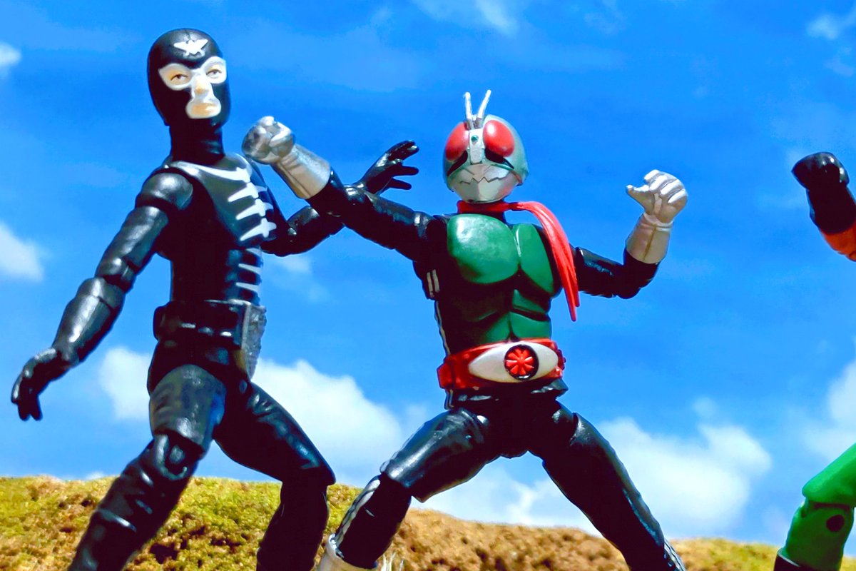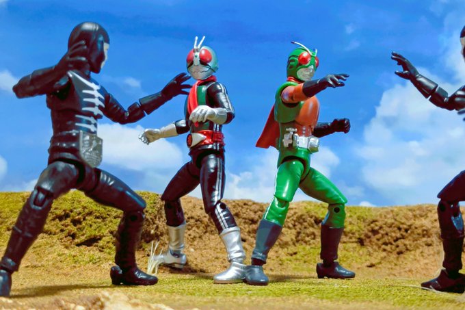 おはようございます☀️ スカイライダーとストロンガーのダブルキックって胸熱 ですよね( ´∀`) #仮面ライダー #仮面ライダーストロンガー #スカイライダー #九人のライダー #掌動 #shodo仮面ライダー #特撮 #オモ写