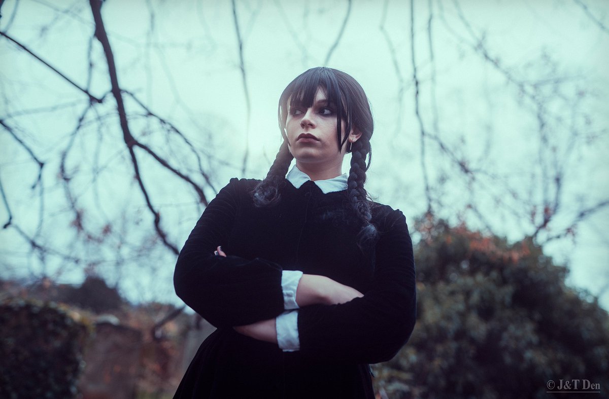 "Am I supposed to be impressed?" #wednesday #wednesdayaddams #netflix #jennaortega #enid #enidsinclair #emmamyers #smalltown #usa #cinematic #cosplay #photography #london #location #shoot #cemetery #crypt #mausoleum #tomb #timburton #addamsfamily #thing #creepy #kooky #goth