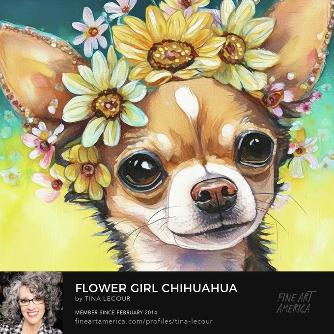 Flower Girl Chihuahua...get it here..tina-lecour.pixels.com/featured/flowe… #dogs #pets #animals #chihuahua #cute #spring #nursery #children #gifts #giftideas #giftsforher #mothersday #shopmycloset #shopping #wallart #homedecor #interiordecor #prints #art #BuyIntoArt #SpringForArt