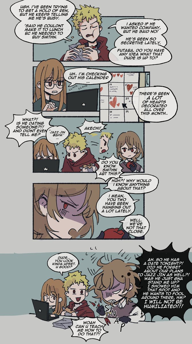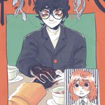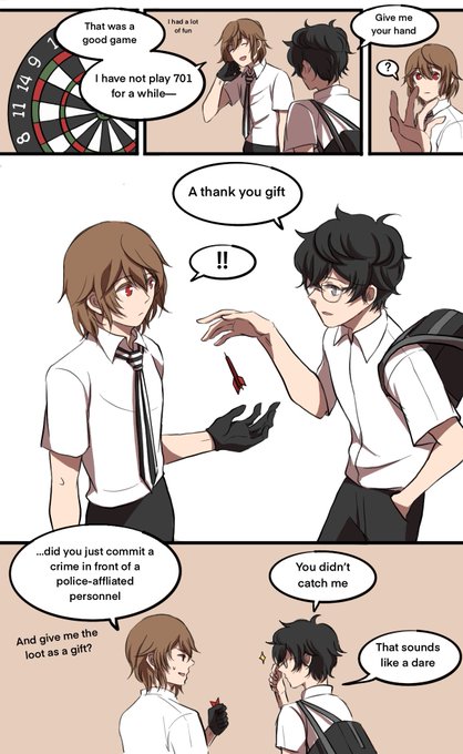 [persona 5] day 4: video games Akechi has a consistently good KD ratio in turf wars, but Joker will still kick his ass some matches. They’re scary when they’re on the same team together. #shuakeweek2023