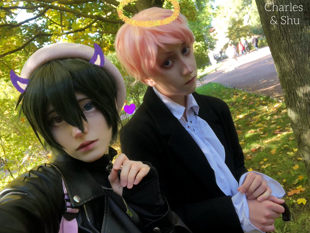 Second day of con! Today we cosplayed kuroshu, to celebrate the release of Shu's Gacha! KuroShu has been an otp of mine for years, I'm very happy ❤❤❤ #enstars #EnsembleStars #kuroshu #kurokiryuu #shuitsuki #cosplay #cosplayer #enstarscosplay