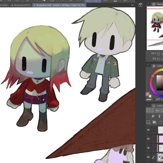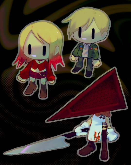 Sometimes I get a flood of creative spunk, and I do things. I'm so excited for the upcoming #SilentHill games. #pyramidhead #pinup #beibakumae #rainbowbrainsplatterings #fanart #ArtistOnTwitter #gamepinup #SilentHill2