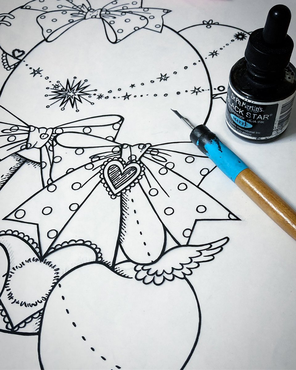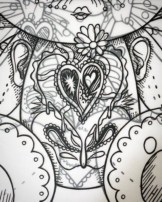 ラブリーワールド🦴💝👂 This drawing is for silkscreen print. #art #drawings #painting #print #silkscreenprint #teddybear #anatomical #chiakishuji #アート #美術 #絵画 #線描 #シルクスクリーン #版下制作 #版画 #ドローイング #ペン画 #アナトミカル #塗り絵 #Chiakiぬりゑ #集治千晶