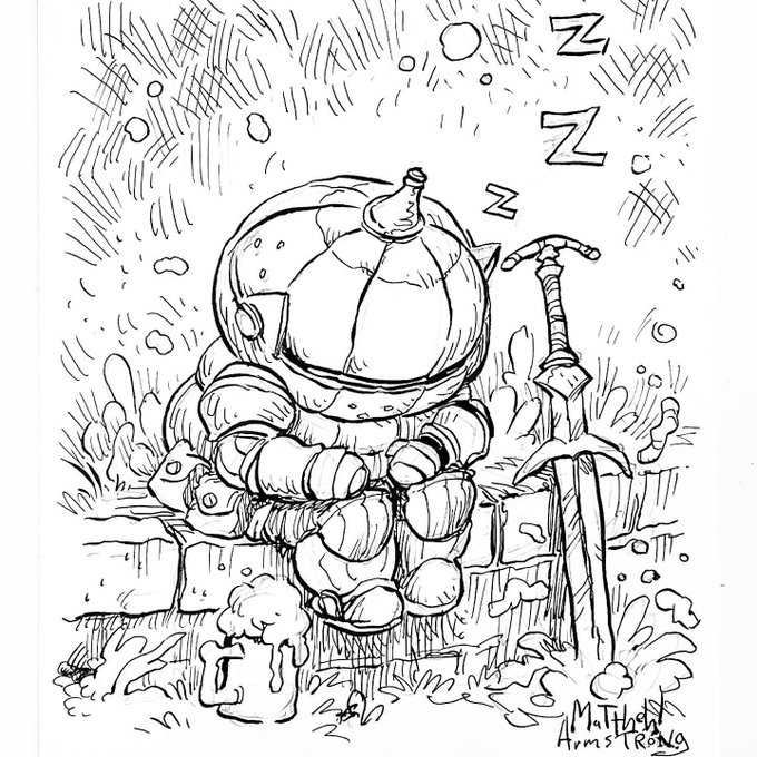 SWORDTEMBER: day 7 Storm Siegmeyer of Catarina and his STORM RULER Giant Slayer Sword #matthewart #swordtember #swordtember2021 #swordtember⚔️ #swordtemberday7 #inktober #kidlitart #sillyart #kidlitillustration #darksouls #onionknight #stormruler #Siegmeyer #Catarina #siegfried