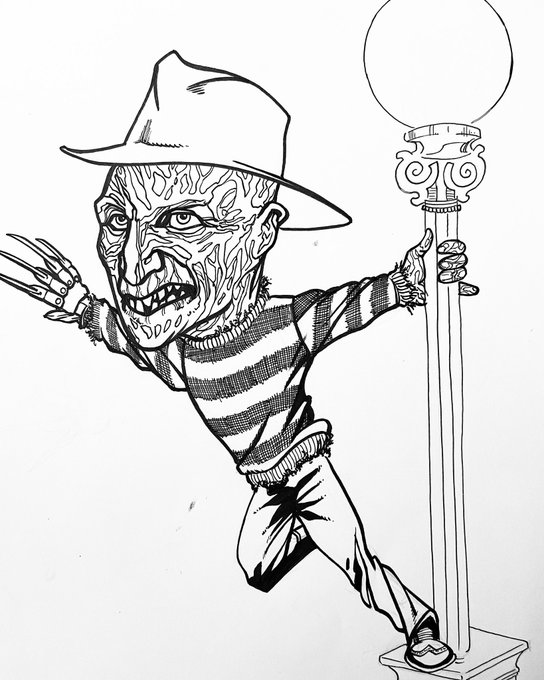 #inktober day 29: FREDDY KRUEGER…SINGING IN THE RAIN! 🔪🎃☔️ A fun chibi #mashup from a few years ago. (Original art available!) #inktober2021 #freddykrueger #anightmareonelmstreet #halloween #horrormovies #fanart #springwoodslasher #singingintherain