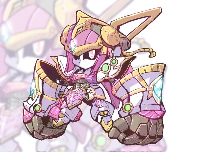 #sirenの落書き帳 #閃光の魔封帝 玖辺麗杏紅凛流(キュベレイアンベリール)! モチーフは同名機体+玖辺麗 玖辺麗を参考に作られた鉄機武者で外観は玖辺麗墮舞斗(キュベレイダムド)から大きく変化していないが、装甲や武装等が最新型にアップデートされている…みたいな後期マイナーチェンジな感じ
