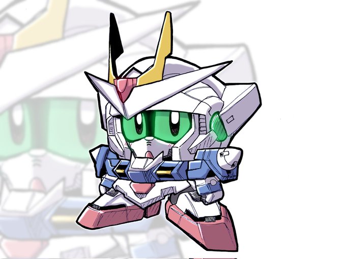 #sirenの落書き帳 ダブルオーくんをセルフリメイク! 特徴を拾いつつあのバランスにするの難し過ぎる💦 顔はあまりダブルゼータくんには寄せすぎず、あの世界にダブルオーガンダムがいたらこんな感じかな位のテイストで