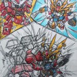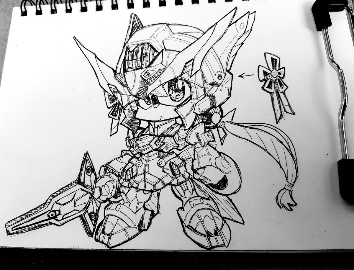 #sirenの落書き帳 #ラーガンダム 「武者魂、必ずや体得してみせる!」 武者ラーガンダムこと日輪丸! 武者頑駄無と武者魂に憧れて武者の国にやって来た若者。 二本の槍、イザナギとイザナミを使った戦いが得意。 額の日輪石から太陽の力を得る事が出来、太陽が出ている時はパワーアップする