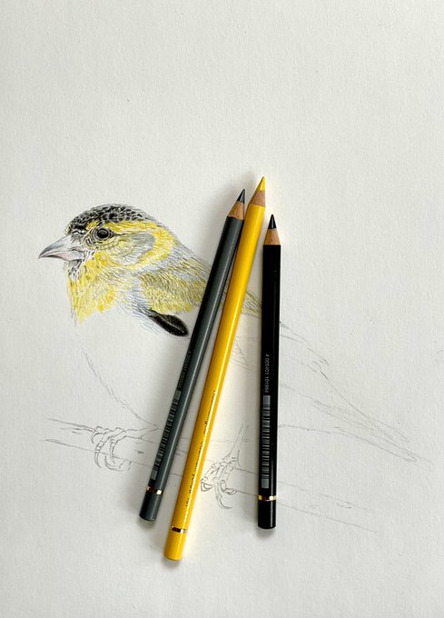 Working on a new drawing ✍️ A Siskin #siskin #birds #bird #colouredpencils #drawing #art #artistontwitter