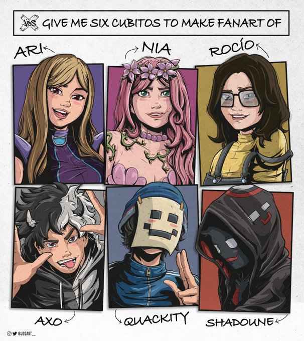 Segundo challenge de Cubitos terminado, espero les guste, amigos. Este si me tomo más tiempo ✨❤️✌️ Rt para seguir dibujando 🫂🫂🫂 #sixcharacterchallenge #streamers #fanart #arigameplays #lakshartnia #rociodta #axozer #quackityfanart #shadoune666