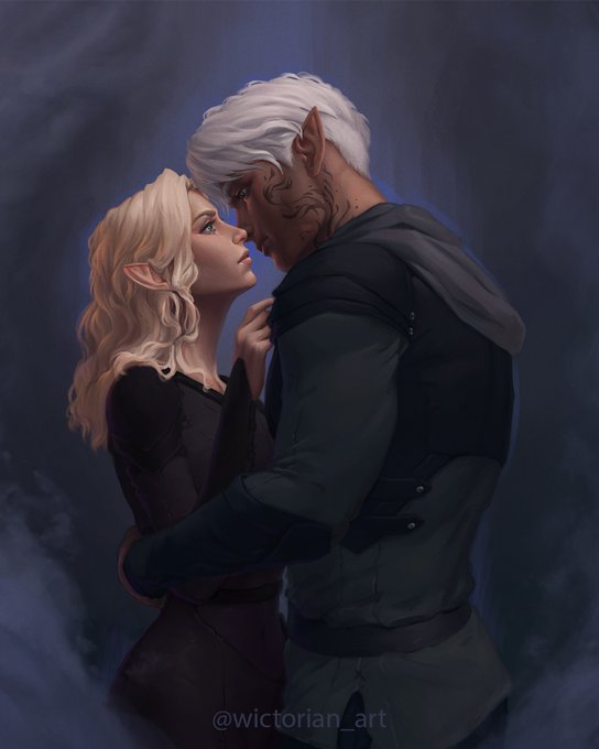 Feysand and their guppy for #mermay #rhysand #rhys #highlordofthenightcourt #feyrearcheron #feysand #acotarfanart #acotar #acourtofthornsandroses #sarahjmaas #sjmaas #sjm #feyreandrhysand #feyredarling #feyre