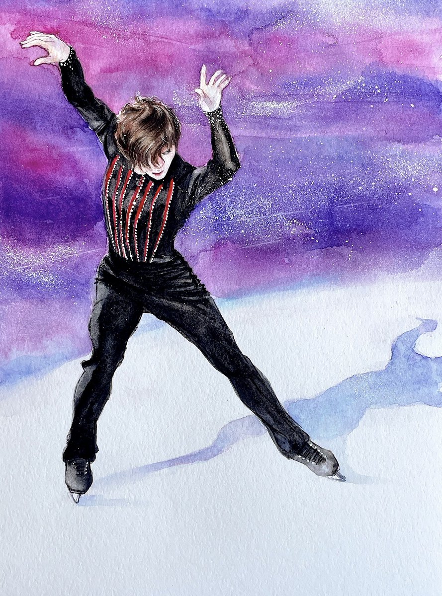 挑む!⠀ 4T3Tへ向かうところ❣️ ⠀⠀⠀⠀ #shomauno #宇野昌磨 #weloveyoushoma #goodluckshoma #watercolor #水彩 ⠀ #skateamerica #スケートアメリカ