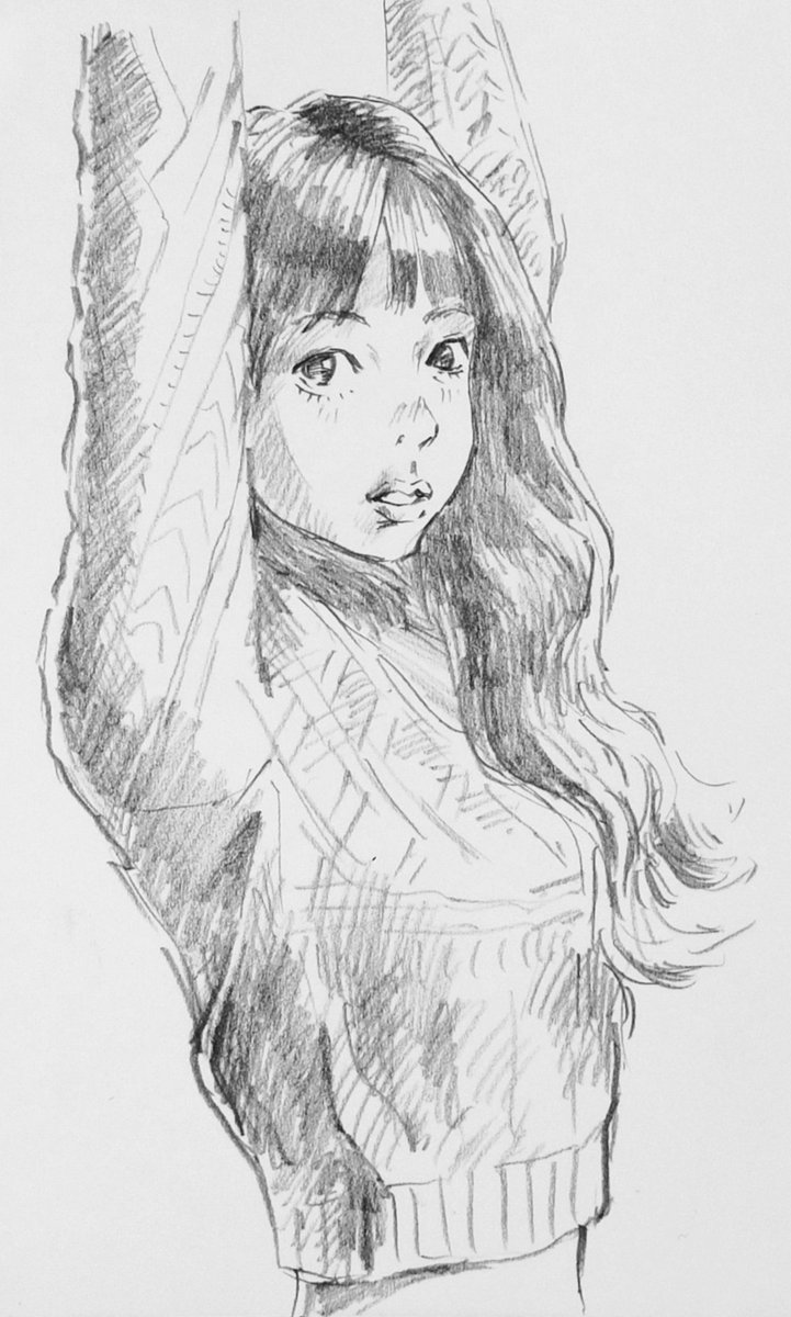 200日チャレンジ155日目 少女つぐみ 急に季節感なくてごめんなさい #200日チャレンジ #ラフ #イラスト #絵描きさんと繋がりたい #イラスト #鉛筆 #落書き #描く散 #illust #skechbook