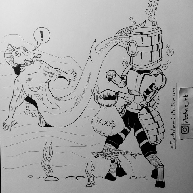 #Furktober2021 (15) Sirenas (Sirens) Nobody is saved from taxes, nobody! . (↱↲, 💬 o/or ♥)🐠 . #illustration #draw #skecht #skechtbook #ink #inked #drawsession #furryart #furry #siren #fantasy ▶️ instagram.com/p/CVohREqMBNy/… @ArtistRTweeters @ConoceArtistas @TheArtistHelp
