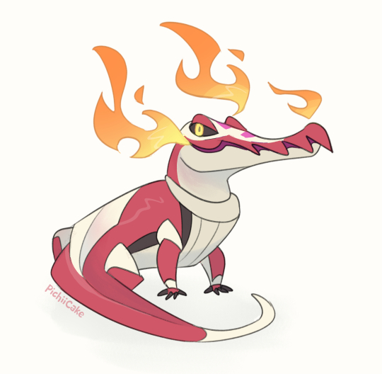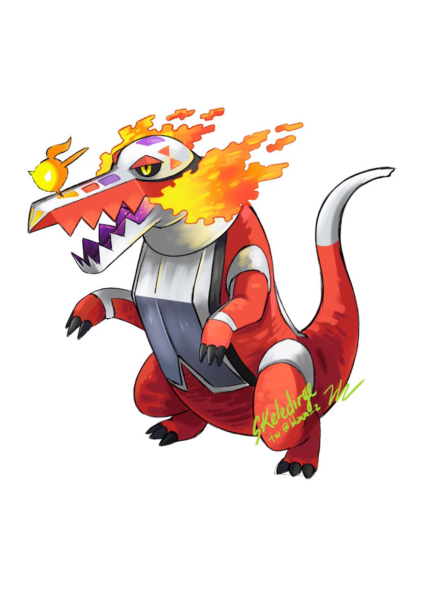What would the designs of Feraligatr and Skeledirge look like in different pokemon eras? Here is a possible solution! (Feraligatr concept description on comment) #fakemon #pokemonparadox #pokemonscarlet #pokemonviolet #feraligatr #skeledirge #kensugimori #pokemon