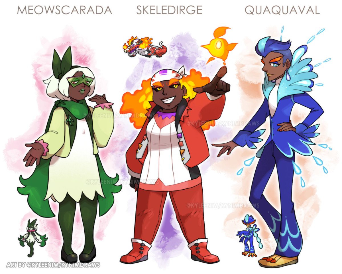 Paldea Evo Trio! As gijinkas/humanizations :] #ポケモンSV #PokemonScarletViolet #pokemonsv #Skeledirge #Quaquaval #Meowscarada