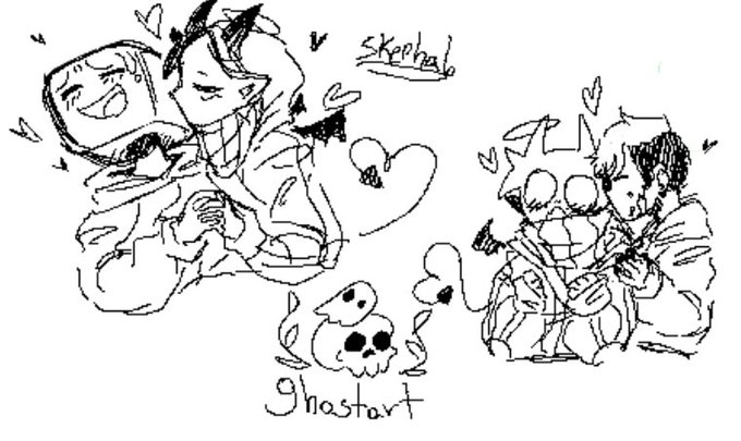 quick fluff sketch fan art of skeppy and bad òvó #bbh #skeppy #SkeppyFanArt #skephalofanart #badboyhalo #happytweet #fluff #skep #muffintwt