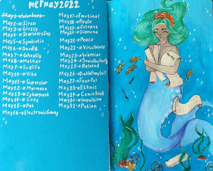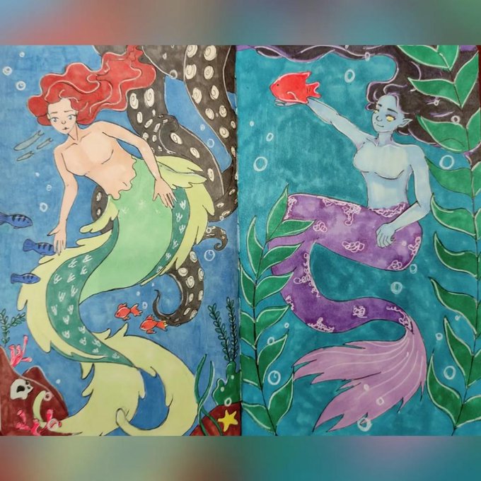 🐋Не было времени вчера выложить. Так что держите за два дня 🐋 9 /31 10 /31 #mermay #mermay2022 #mermayart #mermaychallenge #mermayday9 #day9 #sealife #mermayday10 #day10 #vibe #sketchbook #sketchbook2022 #challenge
