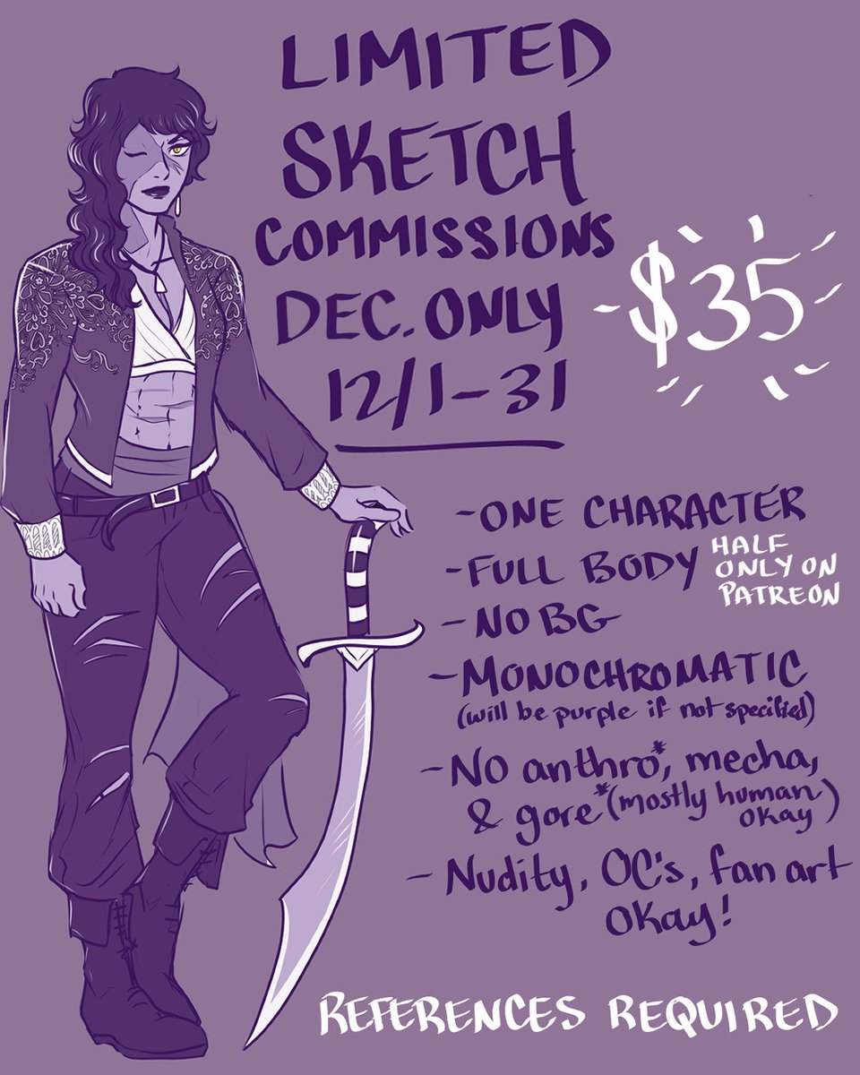 December is here! Which means I’m opening my sketch commissions for December. DM me if interested! Also, my prices have now been updated. #commissionsopen #commissions #digitalart #digitalsketch #sketchcommissions