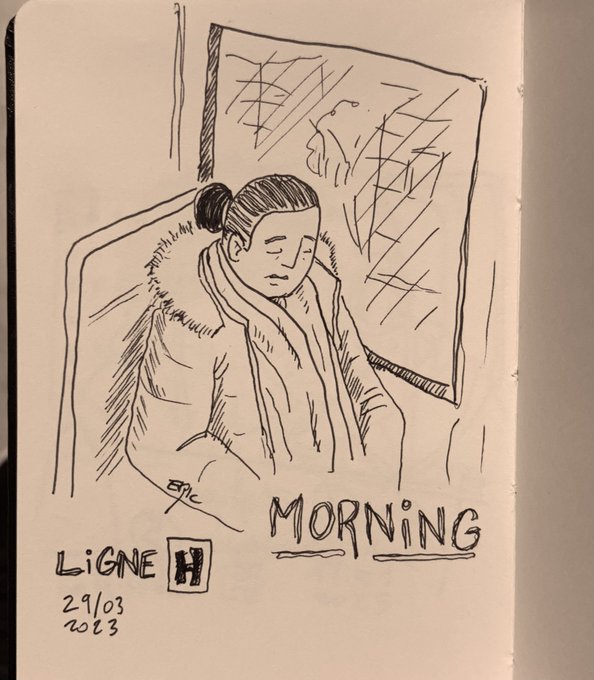Ça faisait longtemps…😅 Un peu de dessin sur #sketchbook, en 5 min dans mon train ce matin… #illustration #uskparis #sketchingpeople
