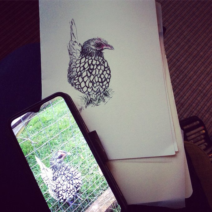 #inktoberday19 saw these lovely bantam chickens today at Traquair House. They were quite cute and made lovely wee noises. #inktober2021 #minibreak #chicken #bantamchicken #inktober #sketch #inksketch #sketchpad #traquairhouse #peebles