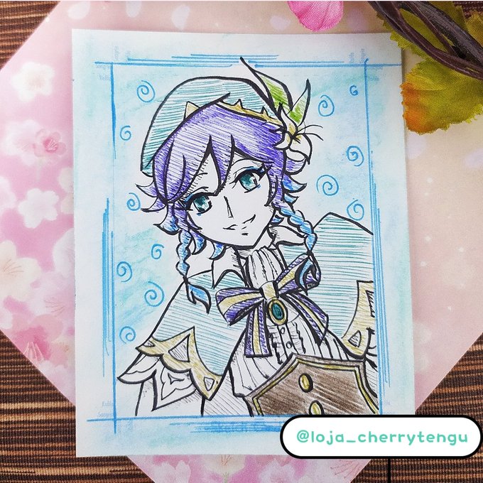 Venti's sketchcard looked so lovely! (Already claimed) Commissions open! (Encomendas de sketchcard abertas ainda, vem pedir sua waifu/husbando) #GenshinImpact #genshinimpactfanart #venti #sketchtember2021