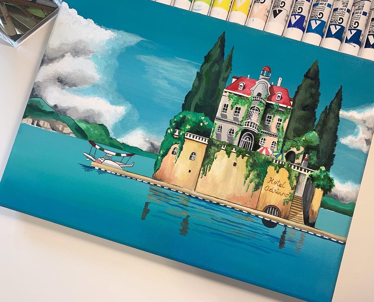 And why not one last tweet before going to sleep🙊 #ghibli #ghiblitober #ghibliredraw #ghiblifanart #nickerpostercolor #gouache #Commission #commissionsopen #artist #skies