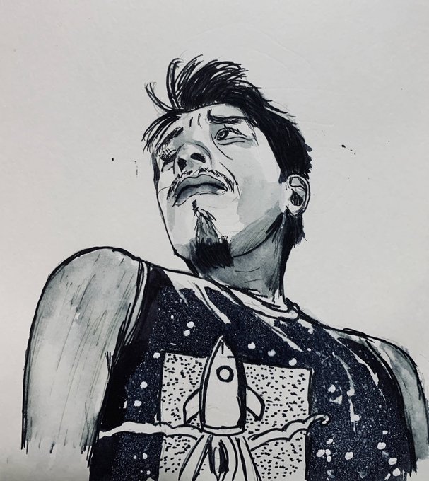 Kieran. Mixed ink water brushes and Pentel brush pen. #InktoberPortraitChallenge #inktober2020 #penandink #Sktchy #portraiture #31faces31days #vinganapathy instagr.am/p/CG_CCMQn5_o/