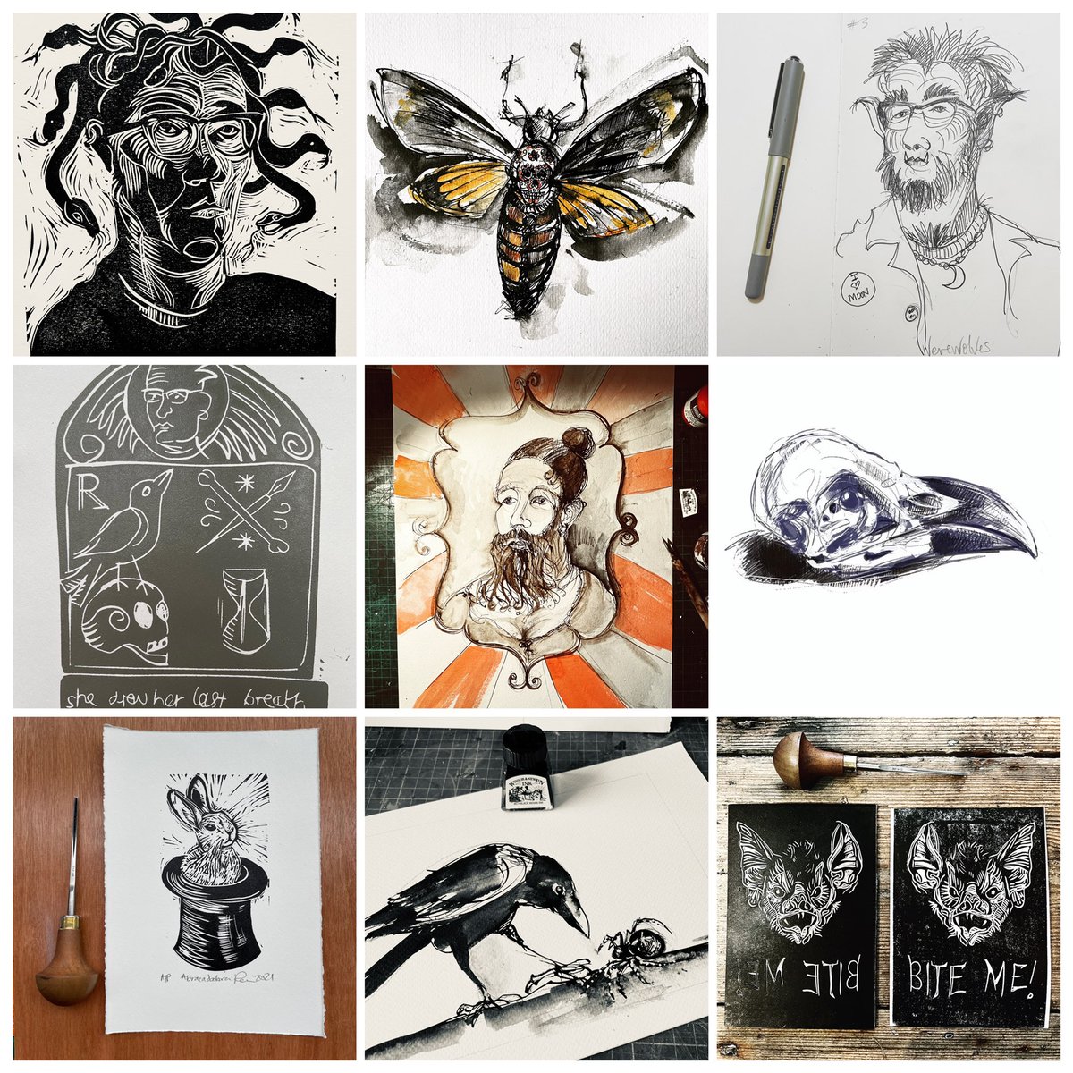 Such an eclectic mix of work for my #inktober #skullptober challenge. Just how I like it! #ArtistOnTwitter