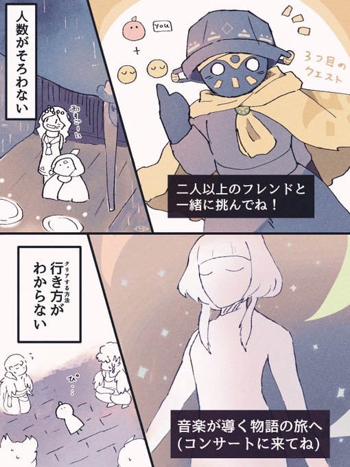 あの預言者の季節の精霊さんたちが突然再訪してビックリ…という絵です。 おさわがせ再訪団 預言者来訪!! (火の預言者さんはほんとにツボ。そういうとこ好き。) #sky星を紡ぐ子どもたち #thatskygame #skyイラスト