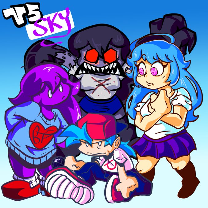 Another Trollge Sky picture (Character owned by me) and drawn by my friend @Fry1ngpans #fridaynightfunkin #fridaynightfunkinfanart #blueballsincident #FNF #fnfsky #skyfnf
