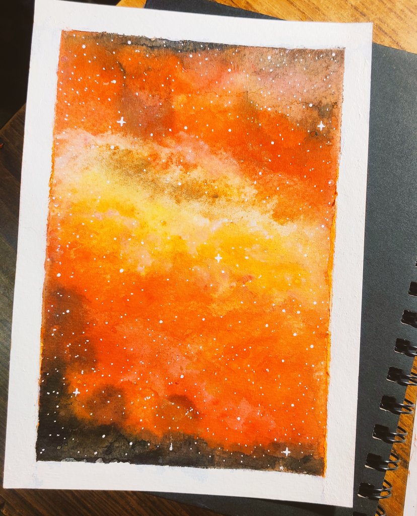 『竜のいる空』 (180×240㎜) 水彩紙にアクリル絵の具 #アクリル画 #acrylicpainting #イラスト #絵描きさんと繋がりたい #空 #skypainting #art #アート #Illust #アナログ絵
