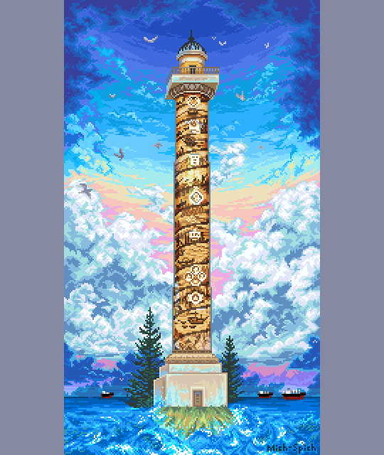 This one took longer but I am very satisfied with it! #pixelart #pixelartist #Astoria #astoriacolumn #aseprite #PNW #clouds #skyscape #ArtistOnTwitter