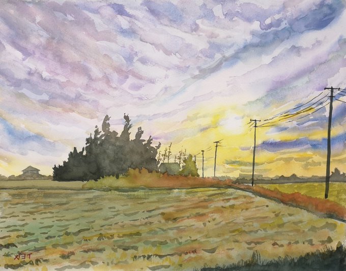 winter afternoon 冬の午後 #watercolor on paper F6 size #watercolour #watercolorpainting #watercolourpainting #landscapepainting #sky #skyscape #水彩画 #透明水彩 #風景画 #空