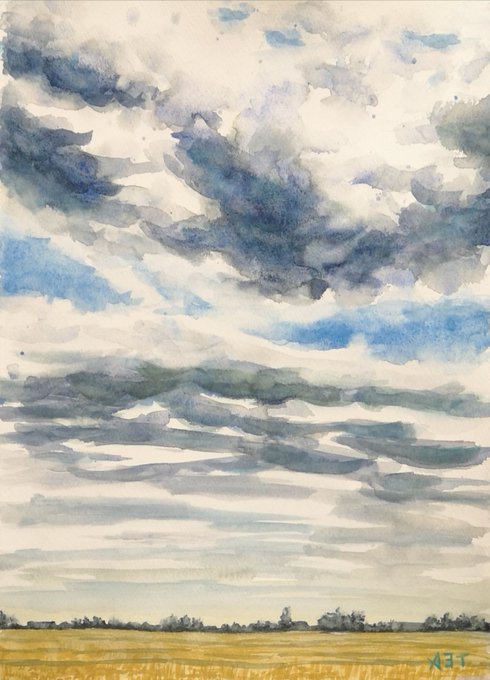 Clouds 曇 #Watercolor on paper F4 size #watercolour #watercolorpainting #watercolourpainting #landscapepainting #sky #skyscape #水彩画 #透明水彩 #風景画 #空