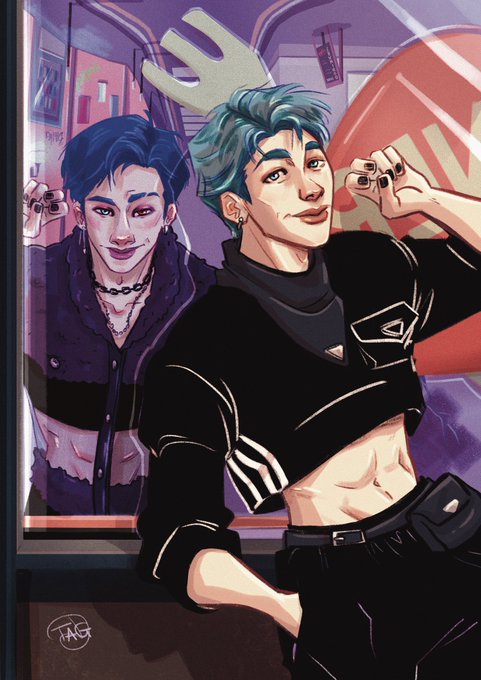 okay bit late but my piece for #skzsquared ; u ; <3 I've loved seeing everyone's work for this hashtag aaa! 💙 #Straykidsfanart #LeeKnow #StrayKids