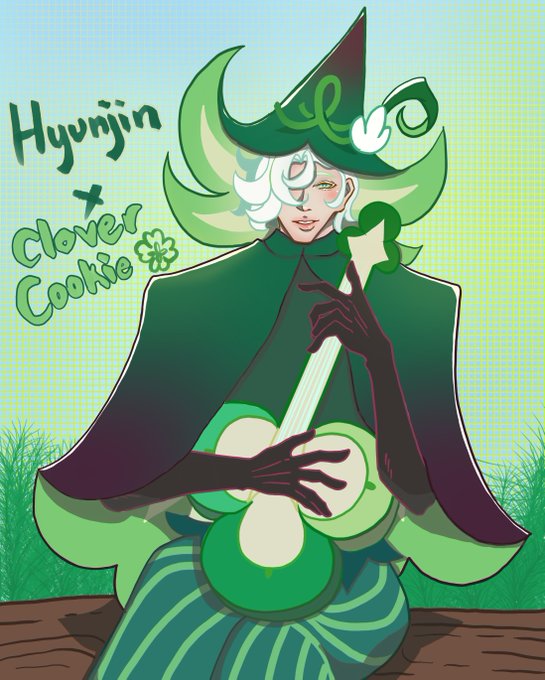 Hyunjin as clover cookie! 🥟+🍀🍪 o((*^▽^*))o They're both clover boy so why not hehehe 🤏💚🍀✨ #skzxcokierun #Straykidsfanart #skzfanart