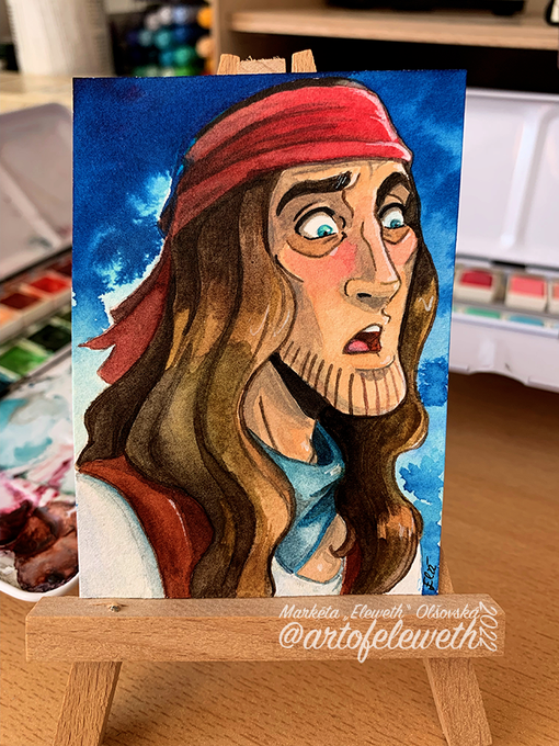 ✨Got some aquarelle paper samples from my friend so I had to test it! ✨100% watercolor #art #artwork #artist #saltybusiness #slanejbyznys #comic #pirate #aceo #card #watercolor #traditionalart #traditional #original #originalcharacter #expression #artistontwittter