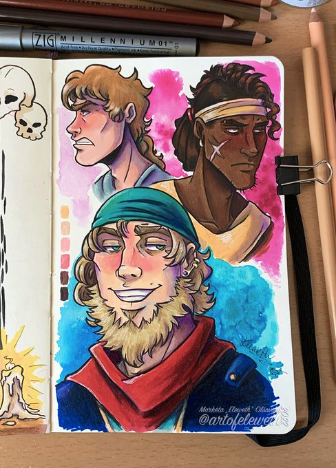 ✨A page from my sketchbook~ Some new pirate designs for comic purposes 😁 ✨ Watercolors, markers & colored pencils #illustration #art #artwork #artist #traditionalart #traditional #saltybusiness #expression #slanejbyznys #pirate #sketchbook #characterdesign