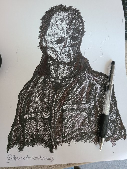 You all gets it early. So fuckin' stoked for @halloweenmovie #halloweenkills #Halloween #HalloweenMovie #theshape #MichaelMyers #slasher #slashtober #inktober2021 #inktober