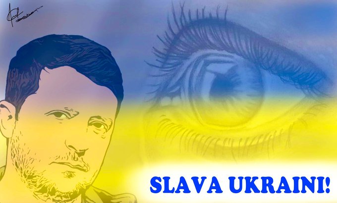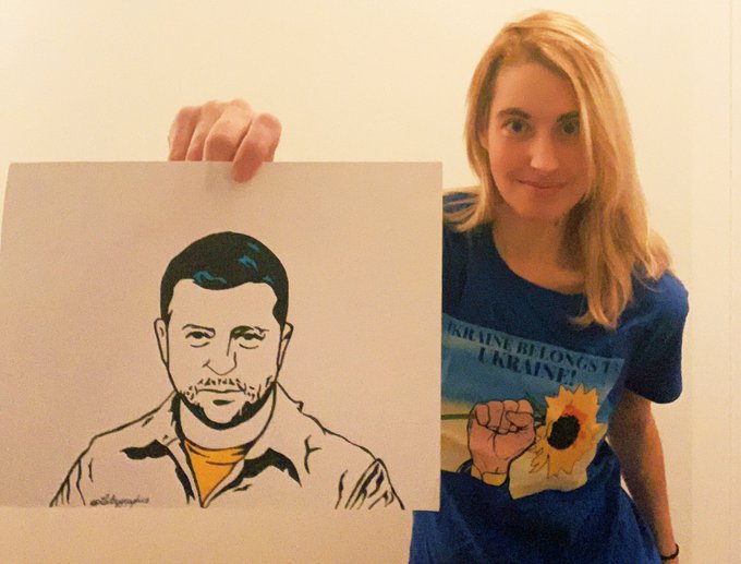 “Ukraine is alive & kicking”! @ZelenskyyUa delivered an inspiring message to the US & the world. Just finished to draw his portrait 🇺🇦✍🏻 #SlavaUkraini