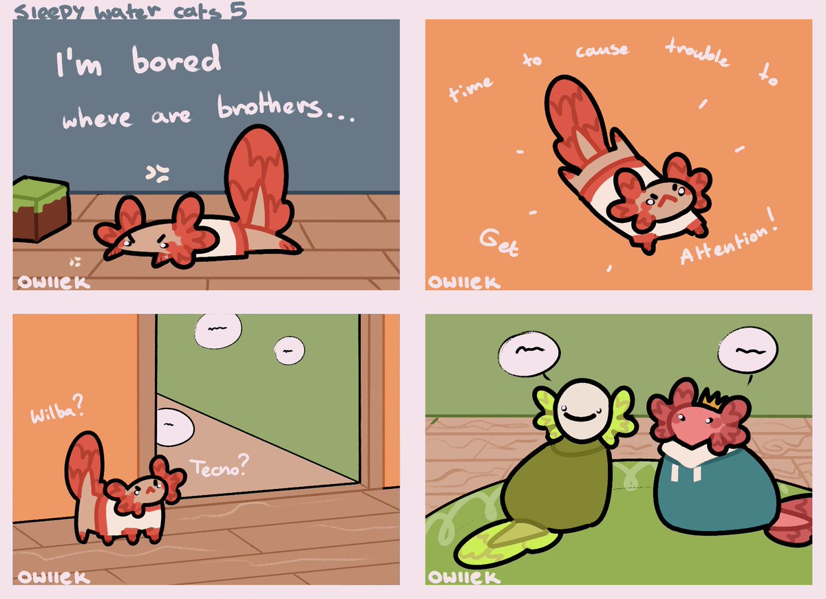 To celebrate my one year in dsmp fandom, I present you redraw of my first mcyt water cats:D #sleepywatercats ! #philzafanart #technofanart #wilbursootfanart #tommyinnitfanart