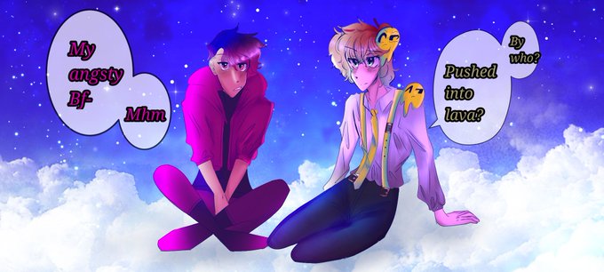 Slimecicle: pushed into lava? Skeppy:mhm Slimecicle: by who? Skeppy: my angsty bf- #slimesiclefanart #slimecicle #SkeppyFanArt #skeppy