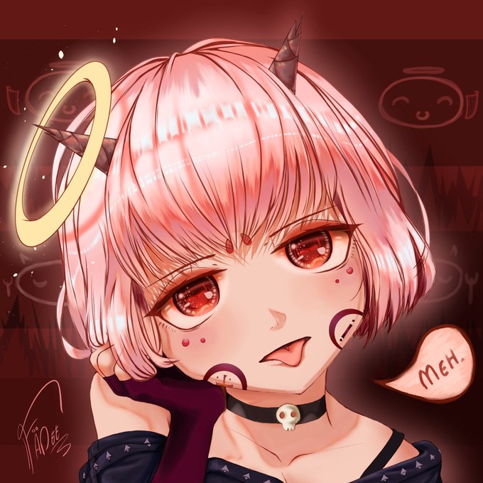 Trying new techniques... Meh... 😒 Oh.. you dropped by... that's cool.... ~Sally💀💀 * * #characterart #art #animeart #DigitalArtist #oc #originalcharacter #pinkhair #medibang #digitalart #selftaughtartist #smallartist #smallartists #followme #angel #demon #halo #red #cute #meh