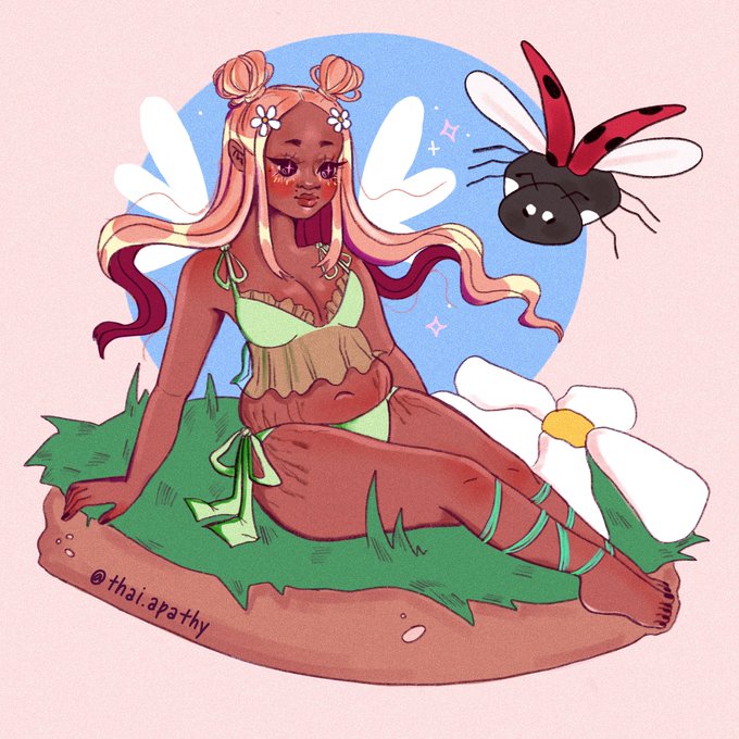 day 1: garden fairy, tulip 🧚♀️🌷✨ trying to catch up on #inktober, #smalltober, and #peachtober21 all at once 🥲