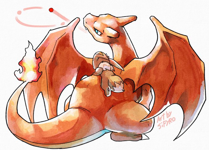 Here is cat month, there is #smaugust2022 Charizard and Eevee watching the mysterious red dot.